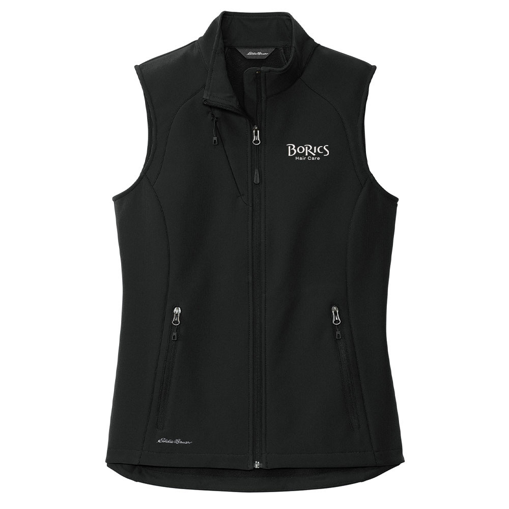 90/10 polyester/spandex bonded to a waterproof film insert and 100% polyester fleece lining. Interior storm flap. Chin guard. Invisible zippered chest pocket. Reverse coil center front zipper. Eddie Bauer logo zipper pull. Reverse coil zippered hand pockets. Embroidered Eddie Bauer logo on right hem.