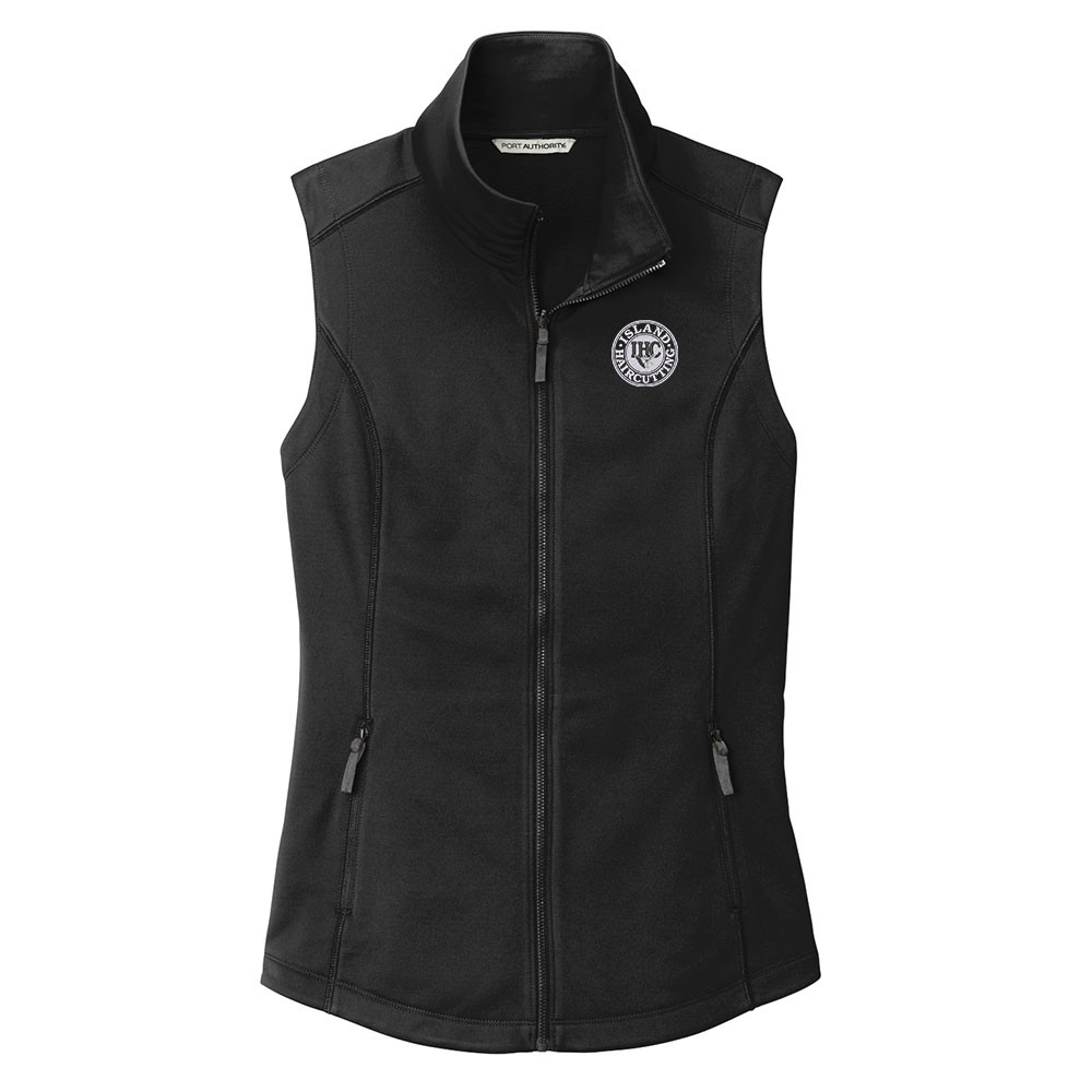 5.9-ounce, 100% polyester fleece. Dyed-to-match and contrast coverstitch. Slightly longer length. Ruching at collar. Molded center front zipper. Front reverse-coil zippered pockets. Tulip hem.